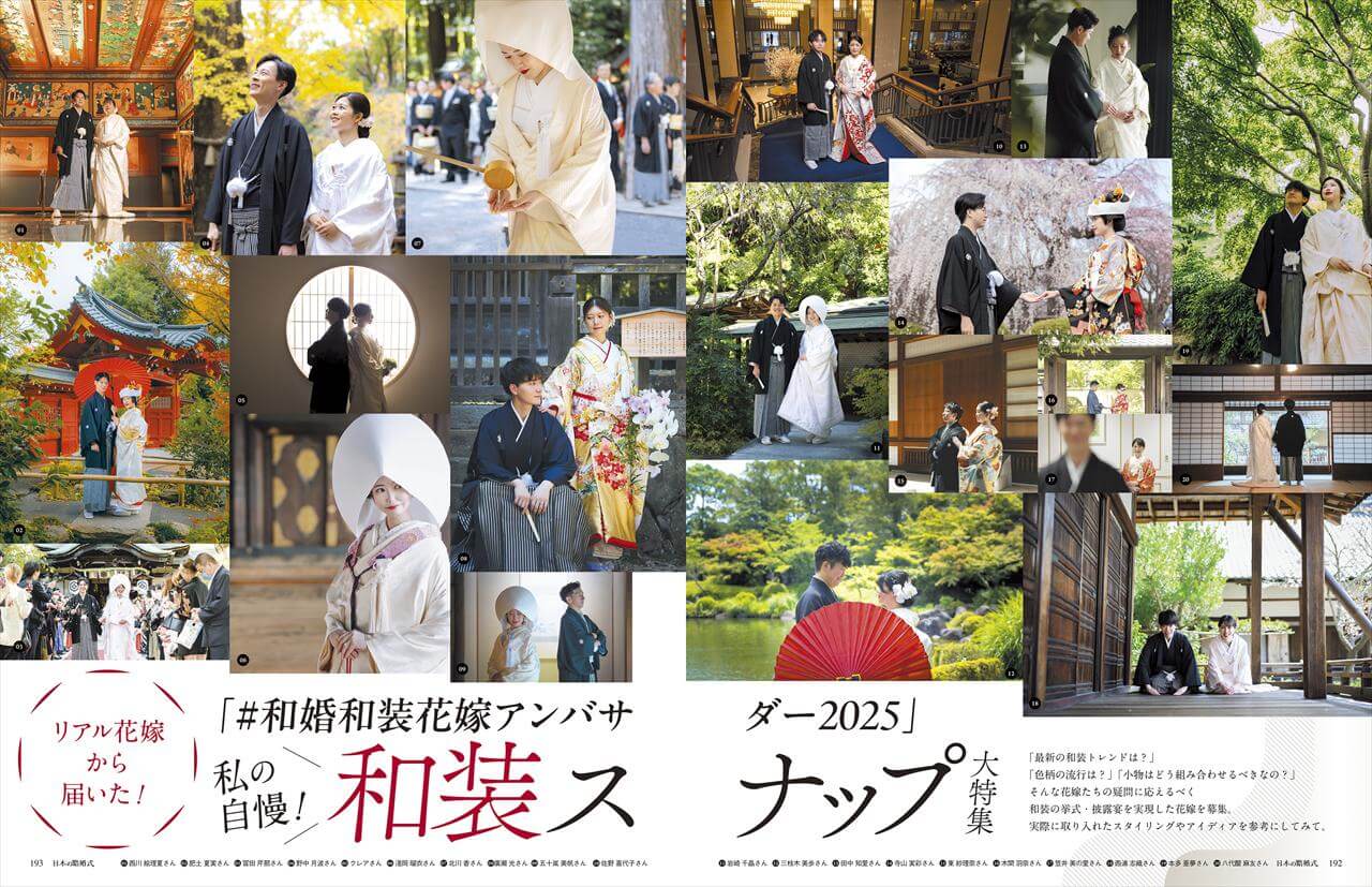 リアルトレンド特集は「和装スナップ大特集」で、「#和婚和装花嫁アンバサダー2025」の和装花嫁たちのリアルショットを大公開するほか、「7組の和婚レポート」「国際結婚カップルが選ぶ神社挙式の魅力」など盛り沢山の内容。